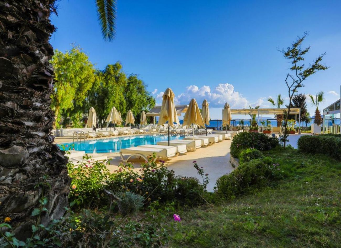Собствен пясъчен плаж. Чадъри и шезлонги на плажа и при басейна - безплатно.