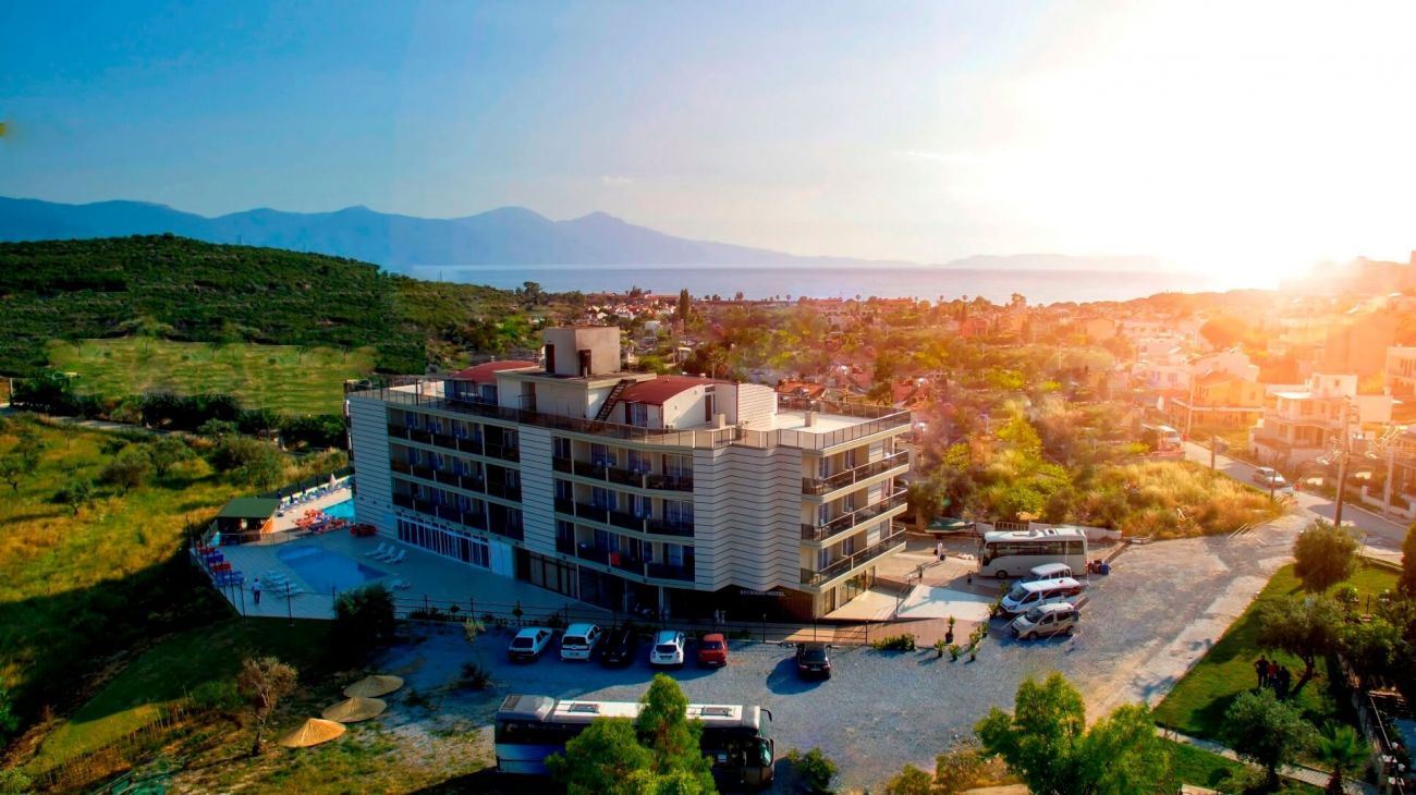 Хотелът се намира на 85 км от летище Измир, на 120 км. от летище Милас, на 5 км. от центъра на Кушадасъ, на 3 км от собствен плаж . Построен през 2014 г.