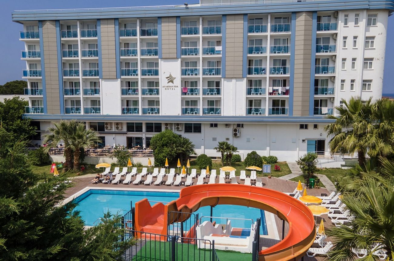 Хотелът се намира на 75 км от летище Измир, на 140 км. от летище Милас, на 6 км. от центъра на Кушадасъ, на 300 м. от морския бряг. Построен през 2012 г. с обща площ от 10000 м². Реновиран 2023 г.