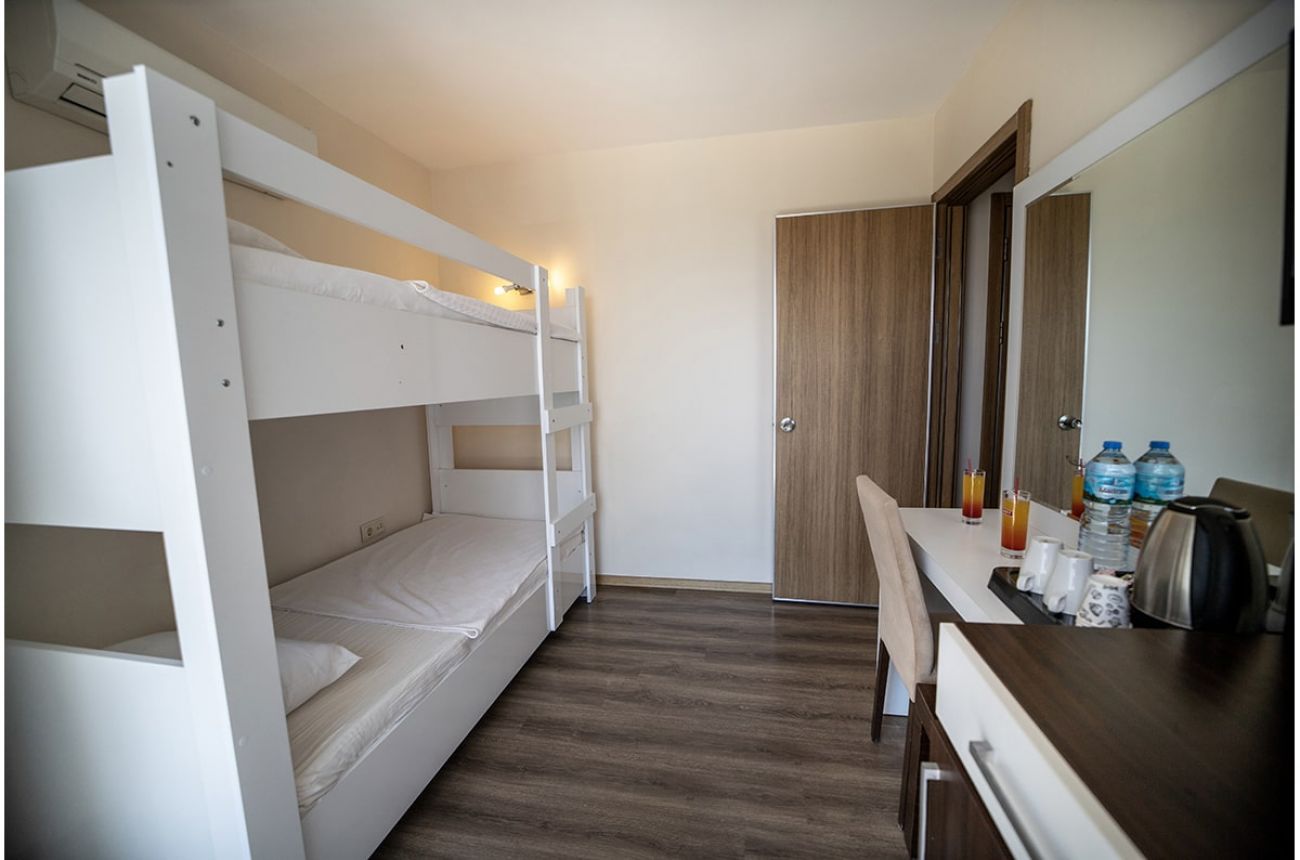 Хотелът разполага с общо 131 стаи, от които 116 Standard Room (24 м2) и 5 Junior Family Room (32 м2), 9 Family Room (45 м2). Всички стаи са оборудвани с климатик, телевизор, телефон, баня с душ, сешоар, сет за чай/кафе, минибар (безплатна мин. вода всеки ден), сейф (безплатен), балкон.