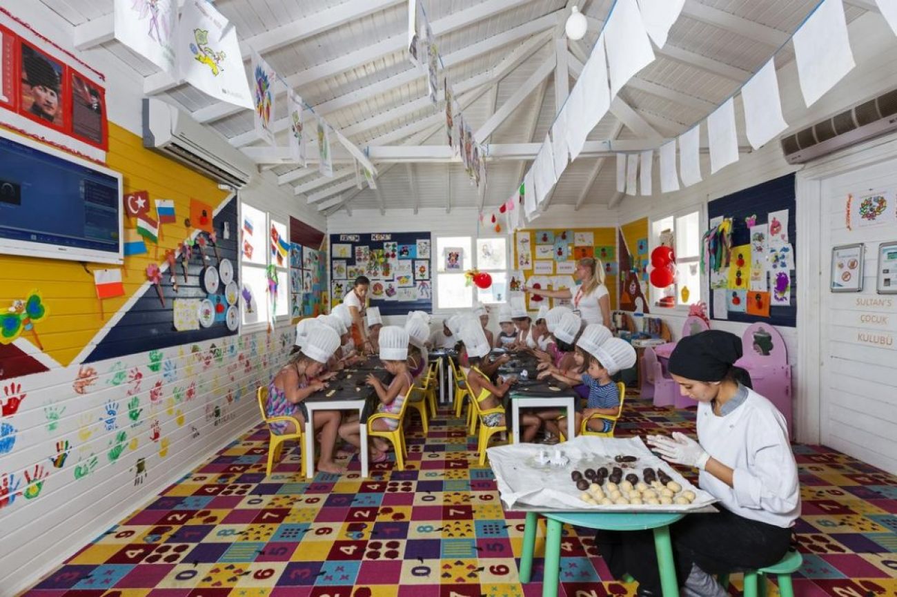 Основен ресторант, 3 алакарт ресторанта - рибен, италиански и турски, 3 бара (лоби бар, снек бар и бар на плажа), 2 външни басейна (един с 8 пързалки и един релакс басейн), 1 външен детски басейн и 1 вътрешен, конферентна зала, магазин, СПА център, водни пързалки. Безплатни услуги: паркинг, безжичен интернет (в общите части), сауна, парна баня, фитнес, тенис на маса, дартс, плажен волейбол, вечерни развлекателни програми Платени услуги: СПА център, масаж, химическо чистене, пране, фризьорски салон, обмяна на валута, сейф, водни спортове За децата: водни пързалки, анимация, детски кът за игра, детска площадка, детско меню, детска дискотека