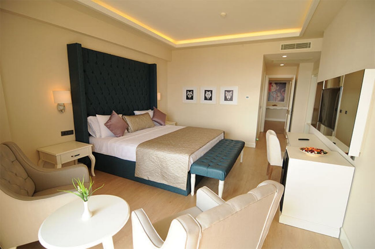 Всички стаи са оборудвани с климатик, телевизор, телефон, баня с хидромасажна вана и душ кабина, сешоар, мини бар(платен), сет за чай и кафе,сейф (безплатно), балкон,.