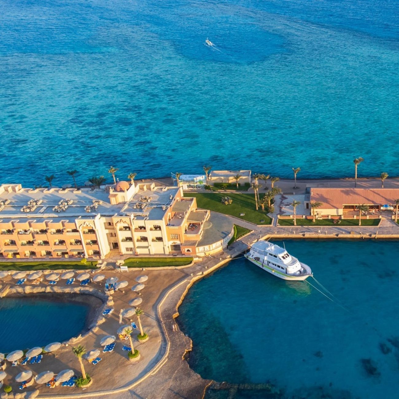 Намира се на 12 км. от летище Хургада, на 3 км. от центъра на града, на брега на морето. Построен през 1991 г., последно реновиран през 2018 г.