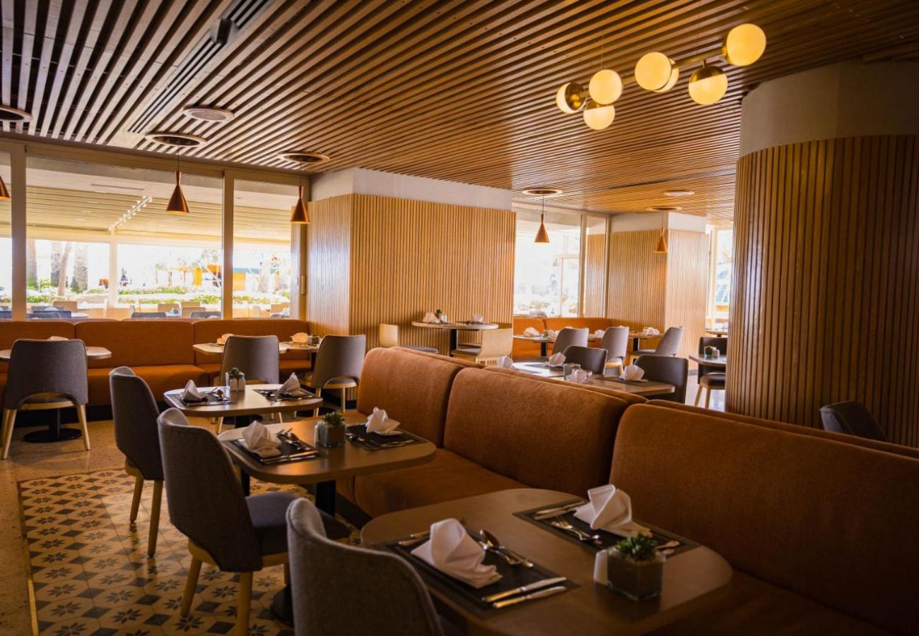Основен ресторант, 3 а-ла-карт ресторанта (италиански, ориенталски, рибен), разположени на плажа (срещу заплащане), 3 бара, 2 открити басейна, банкомат, магазин, СПА център.