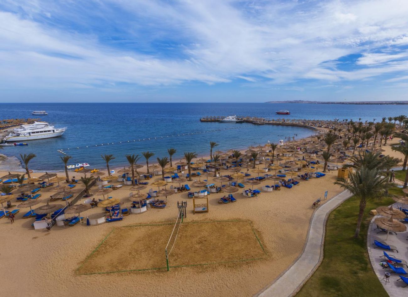 Намира се на 11 км. от летище Хургада, на 14 км. от центъра на Хургада, на брега на морето. Посторен през 1992 г., последно реновиран през 2011 г.
