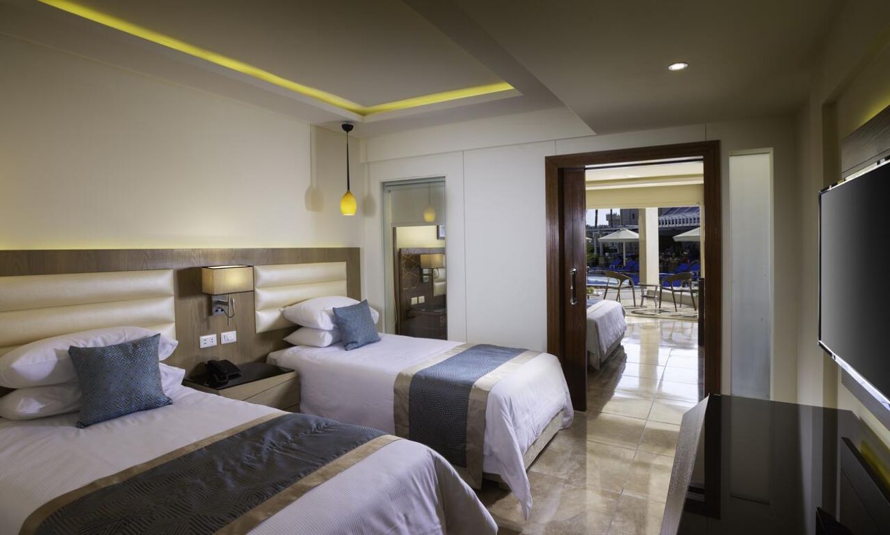 Хотелът разполага с общо 678 стаи, разположени в комплекс от двуетажни вили, основна четириетажна сграда и триетажен корпус. от които 374 Standart rooms (с изглед към градина, басейн или морето – 24 м2), 220 Standard bungalow rooms (с изглед към градина или море – 28 м2), 62 Family rooms (с изглед към градина, басейн или морето) и 22 Suites (с изглед към морето). Всички стаи са оборудвани с климатик, телевизор, телефон, баня с душ, сешоар, минибар (зарежда се всеки ден с минерална вода - безплатно), сет за чай/кафе, сейф, Wi-fi, балкон. Почистване на стаите и смяна на кърпите - всеки ден, смяна на спално бельо – 3 пъти в седмицата.