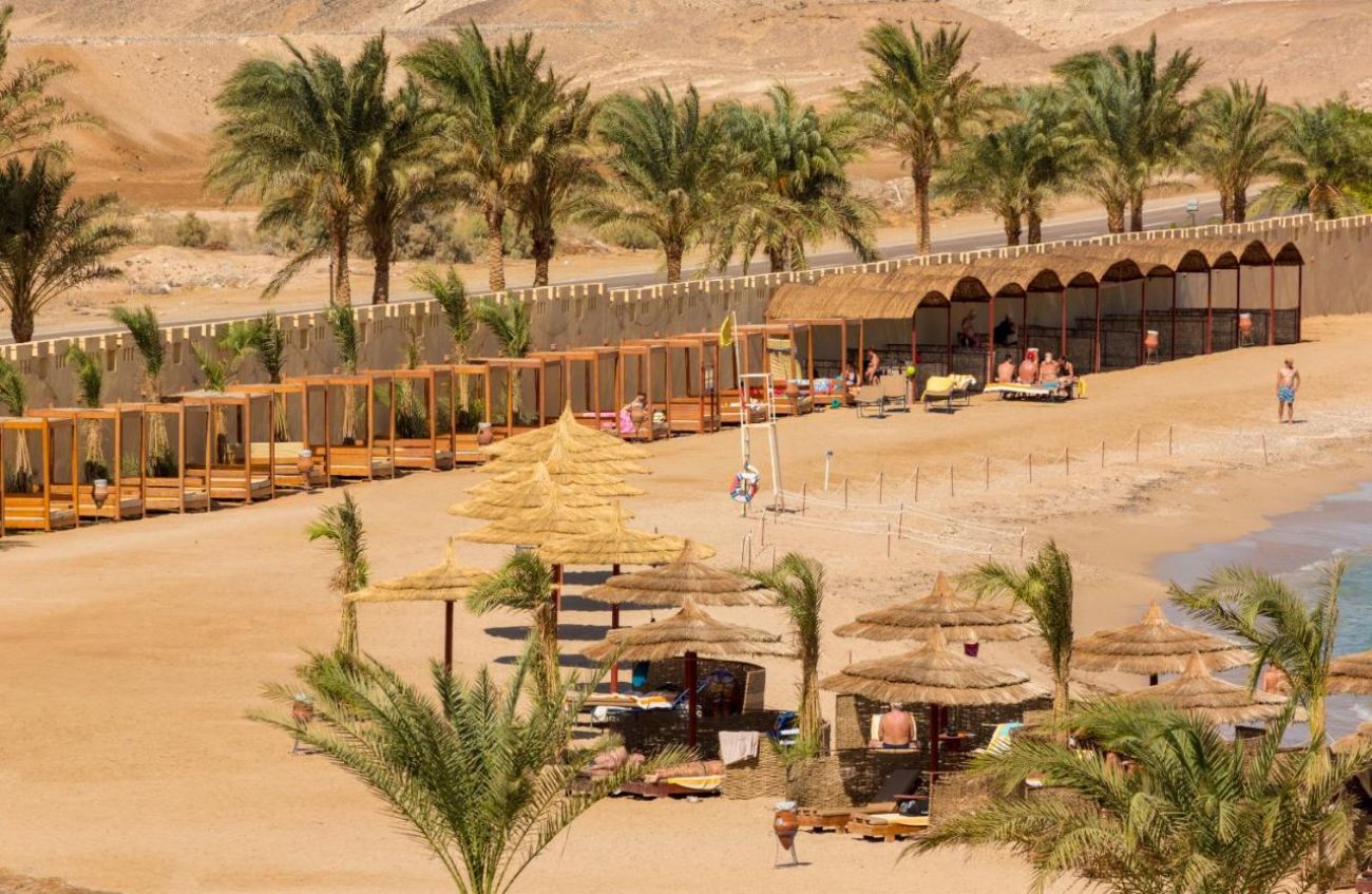 Собствен, коралово-пясъчен. Препоръчват се специални обувки. Чадъри, шезлонги, матраци, кърпи на плажа и при басейна - безплатни.