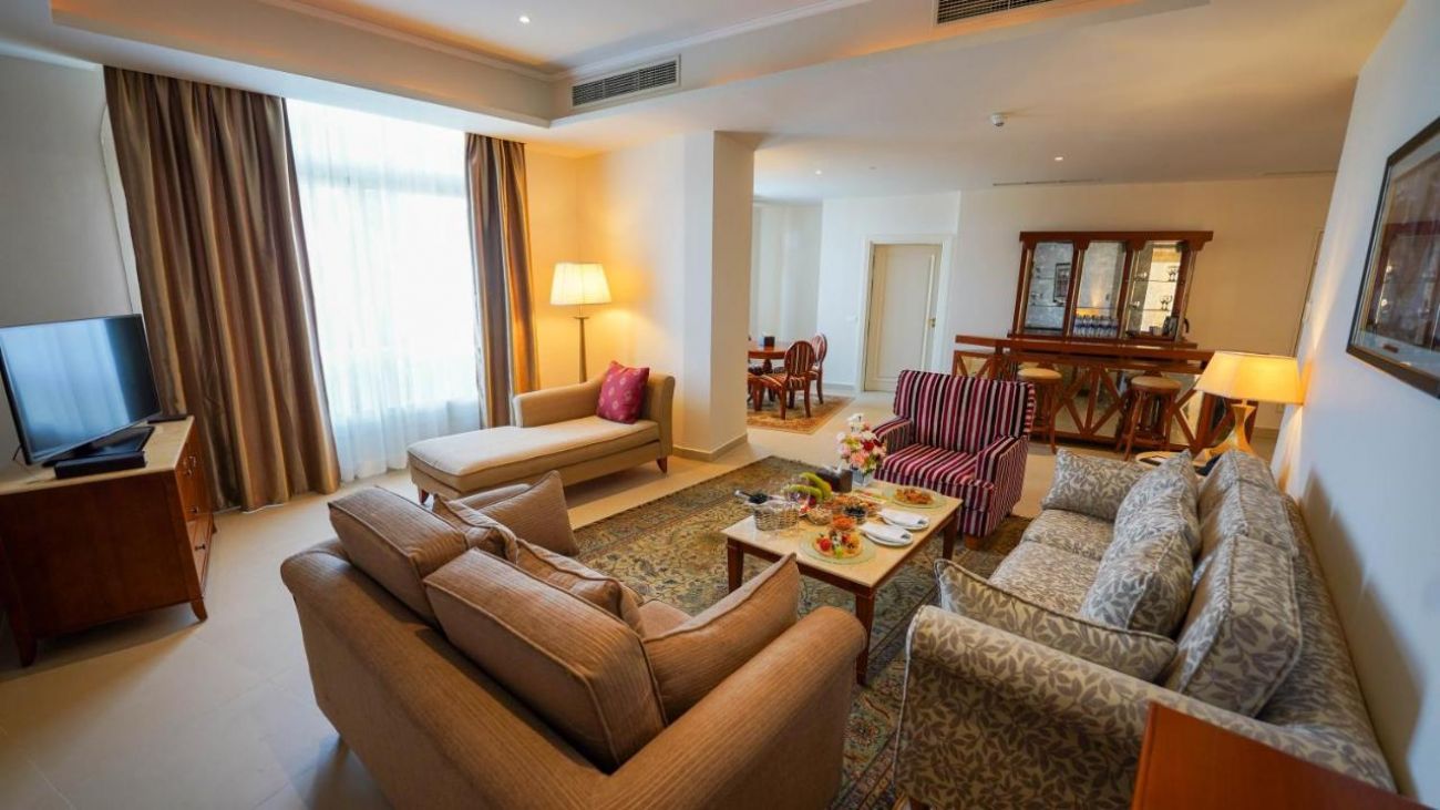 Хотелът разполага с общо 644 стаи, разположени в основна триетажна сграда и отделни двуетажни корпуса, от които 428 Classic room (45 м2), 87 Executive rooms (45 m2), 33 Family rooms (две помещения, разделени с плъзгаща врата 52 м2), 6 superior rooms (56 m2). Всички стаи са оборудвани с климатик, телевизор, телефон, баня с душ, сешоар, меню на възглавници, сет за кафе/чай, мини-бар (зарежда се ежедневно - безплатно), сейф (безплатно). Почистване на стаите и смяна на кърпите - всеки ден, смяна на спално бельо – 3 пъти в седмицата. Комплимент при пристигане - безплатно зареждане с кошница плодове и сладки.