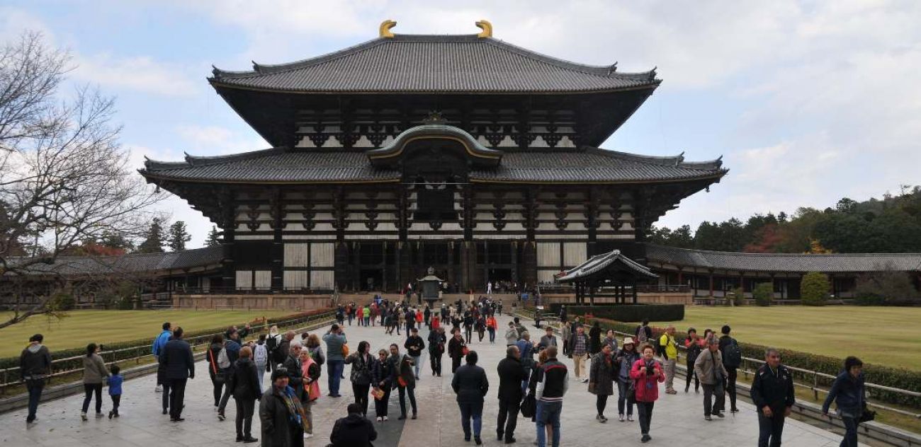 ШЕСТИ ДЕН: Закуска. Отпътуване за старата столица Нара (Осака – Нара 30 км). Посещение на будисткия храм Тодайджи – един от седемте най-големи в Япония. Основната сграда е призната за най-голямата дървена конструкция в света и помещава колосалната бронзова статуя на Буда с височина 15 м. Разглеждане на шинтоитското светилище Касуга Таиша, използвано и като семейна гробница на фамилията Фудживара, дала на Япония много регенти и императори през периода Нара. Паметник на ЮНЕСКО, гробницата впечатлява с украсата от многобройни бронзови и каменни фенери. В храмовия комплекс са разпръснати множество по-малки спомагателни светилища, разположени по протежение на пътя покрай главния храм и посветени на дванайсетте бога на късмета. Комплексът e известен и със своя парк с елени, където животните се разхождат на свобода и могат да бъдат наблюдавани. Обяд. Посещение на старата част на Нара. Завръщане в Осака. Разходка из пазара Куромон – един от централните и добре познати на местните граждани пазари в Осака, където могат да бъдат намерени различни типични за Япония хранителни продукти и стоки. Разходка по популярната търговска улица „Дотонбори”, разположена на брега на едноименния канал. Улицата впечатлява с многобройните си неонови реклами на големи магазини и ресторанти. Разходката продължава по успоредната улица „Шинсайбаши”, където са съсредоточени бутиците и магазините на най-известните марки. Завръщане в хотела. Нощувка в Осака.