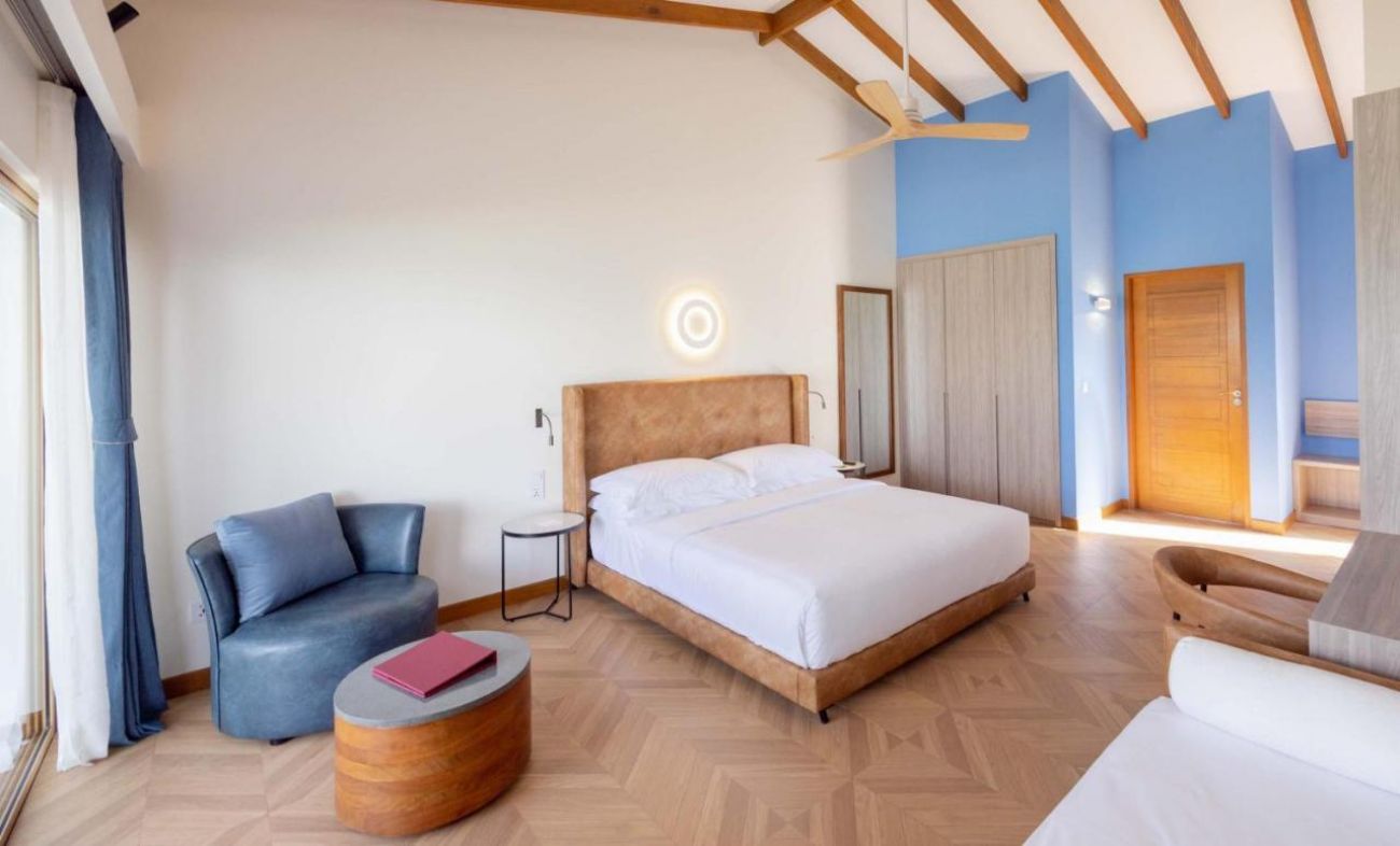 20 Beach Suite - плажен апартамент с гледка залез, 70м2, предлага повече пространство с по-големи всекидневни и бани. Те се намират от противоположната страна на остров със зашеметяваща гледка към залеза и типична малдивска баня на открито.