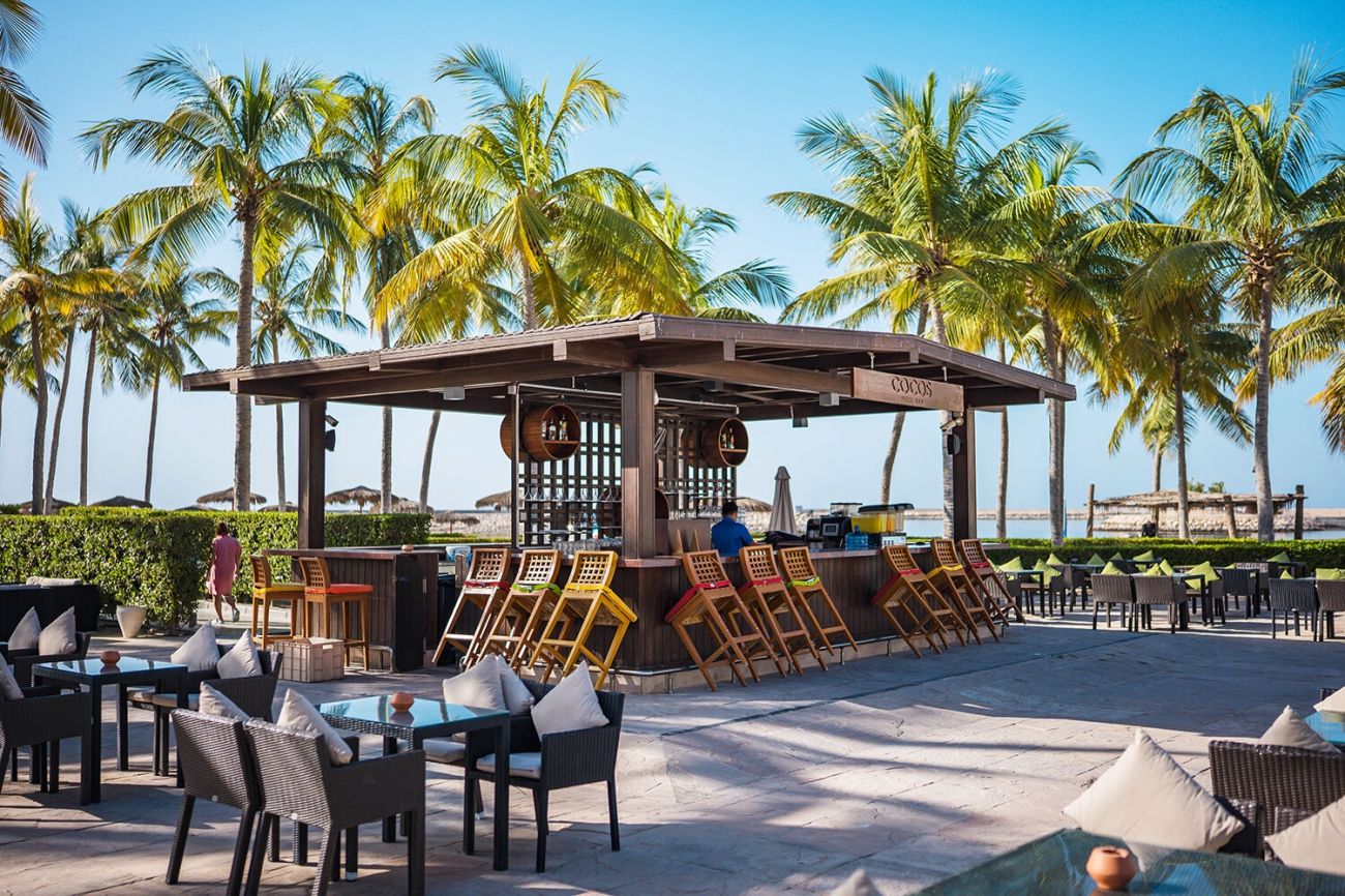 Cocos Bar (от 10:00 – 01:00 ч.), Ivory Lounge (от 11:00 – 18:00 ч.), Zanzi-Bar (от 20:30 – 1:00 ч.), Dunes Bar (от 10:00 – 17:30 ч.), Horizon Roof Top Bar (от 18:30 – 23:30 ч. работи само в понеделник и вторник), Sandbar 1,2,3 (от 09:30 – 17:30 ч.) Rotana Beach Bar (от 11:00 – 1:00 ч.) Coco shack (от 10:00 – 18:00 ч.), Arabesque Lobby & Bar (от 09:00 – 22:00 ч., платен, а-ла-карт меню с чай, кафе и различни сладкиши).
