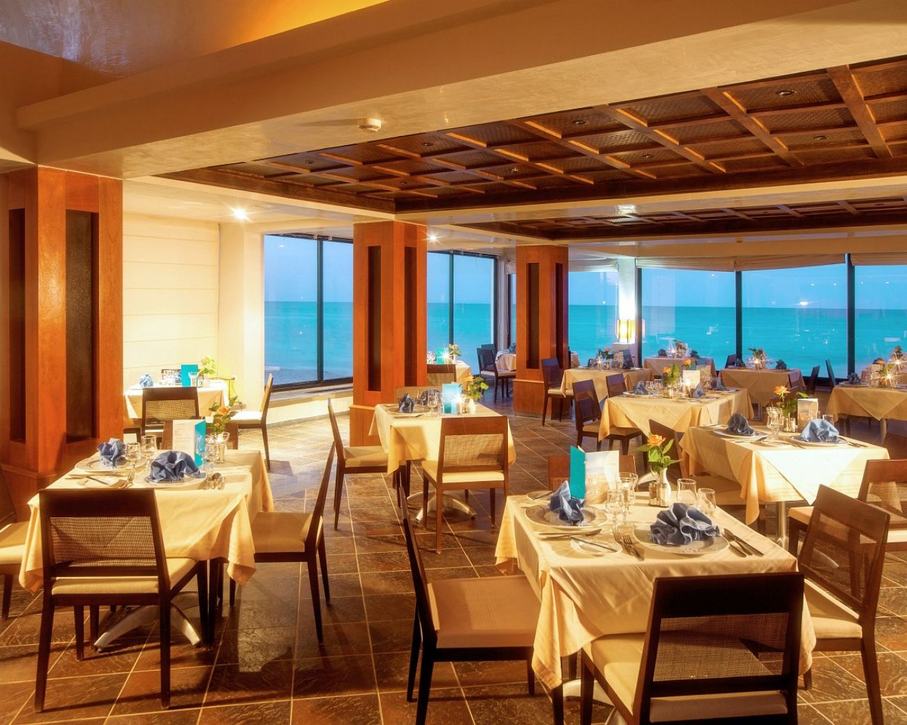 Рецепцията и основният ресторант са разположени в основната сграда, като стаите там са с изглед към морето, басейна и хотелската част. Допълнителната/анекс сграда се намира зад основния блок и стаите там са с изглед към градината.