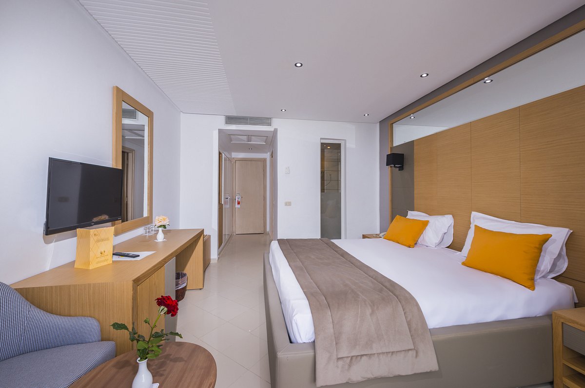 Хотелът разполага с общо 308 стаи, разположени в триетажни сгради, като основната сграда разполага с два асансьора - Standard Room (29 кв.м), Sea View Room (29 кв.м), Superior Room Garden View (29 кв.м), Connecting Room (две стаи със свързана врата).