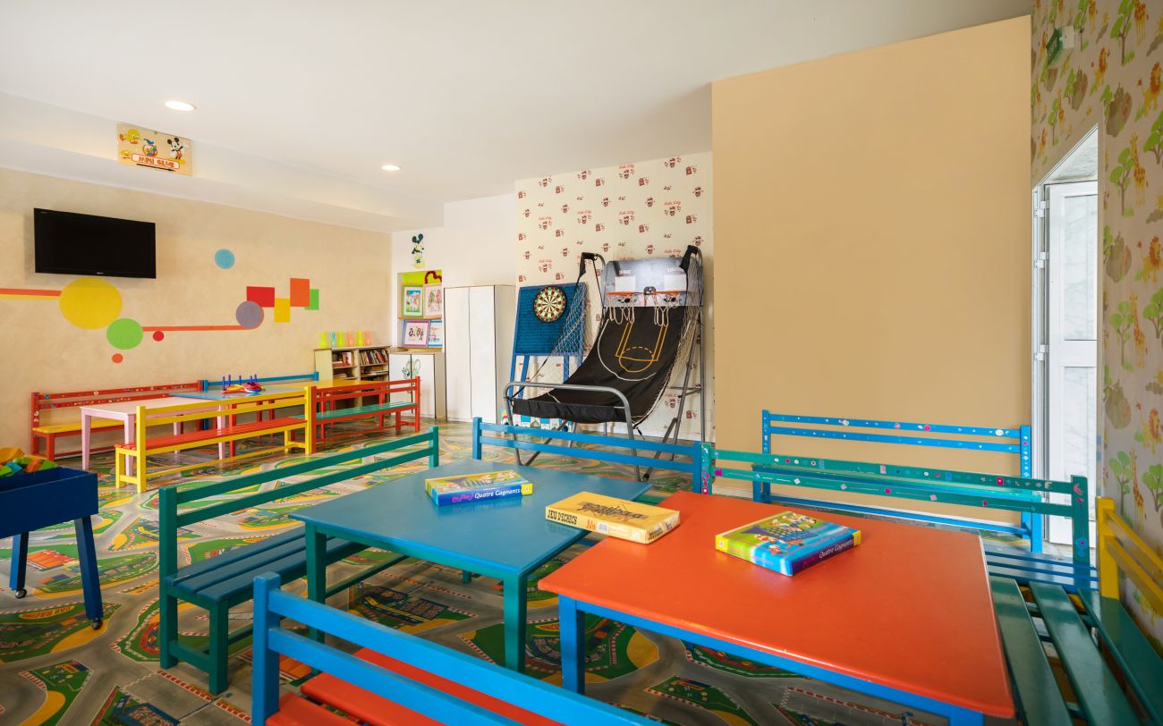 За децата: детска секция на двата външни басейна, мини-клуб (5-12 год.), детска площадка, детски столчета в ресторантите, бебешки кошарки (при заявки, според наличността).