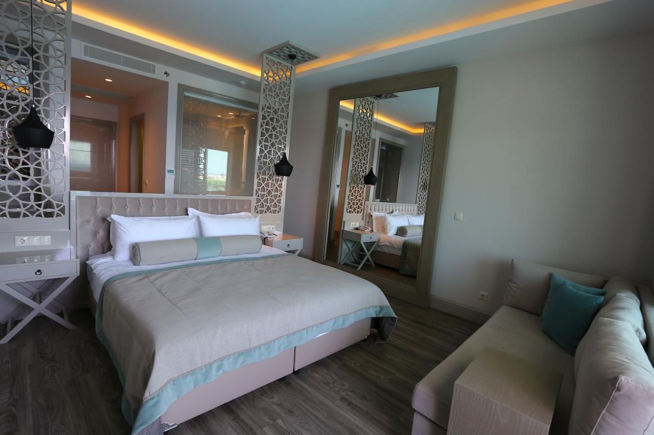 Хотелът разполага с общо 341 стаи, от които 217 Club Rooom разположени в 2-етажни къщички и Deluxe Room в основна сграда. Стаи Club Room (спалня, баня, изглед суша - 20 м²), Club Room Sea View (спалня, баня,с изглед море - 20 м²), Family Club Room Land View (2 спални,1 баня, с изглед суша - 35 м²), Deluxe Room Sea View (спалня, баня, с изглед море - 35-40 м²), Deluxe Family Room Sea View (2 спални, 1 баня, с изглед море - 55 м²).