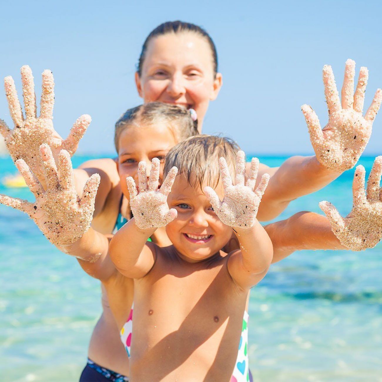 Собствен, пясъчно - чакълест. Чадъри, шезлонги и плажни кърпи на плажа и при басейна – безплатно.
