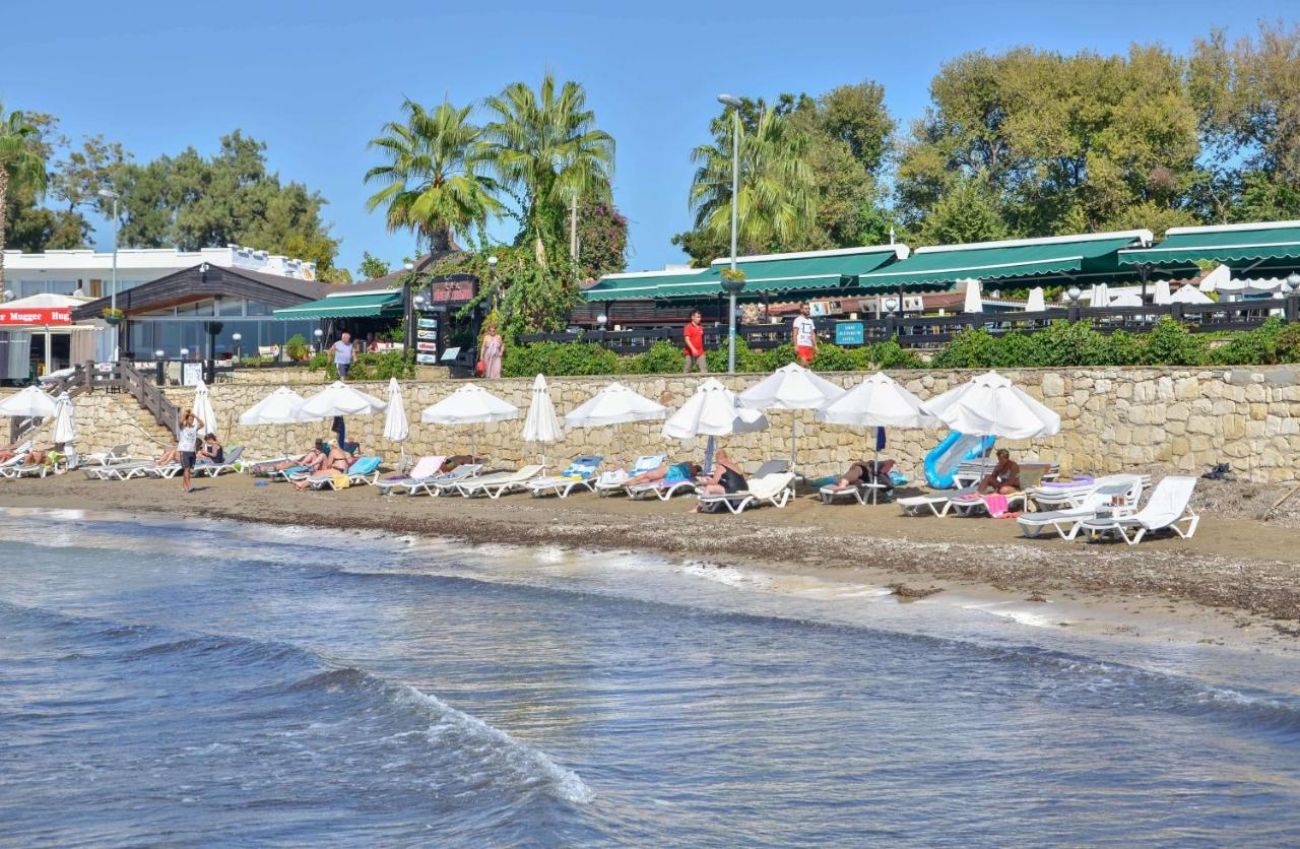 На 900 м. от плажа. Чадъри, шезлонги и матраци на плажа и на басейна – безплатно.