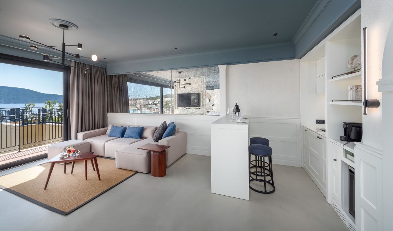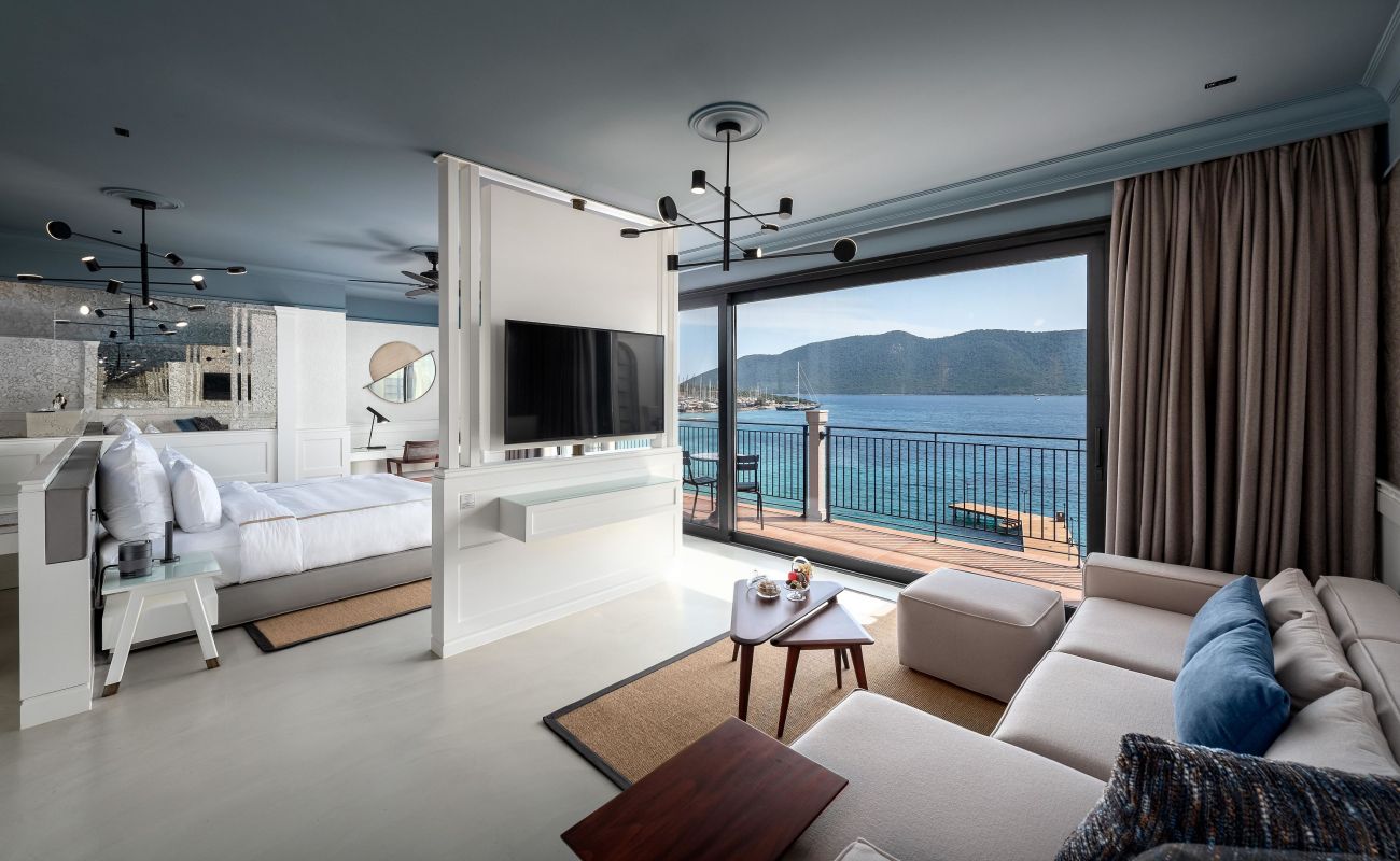 Хотелът разполага с 24 Deluxe Rooms и 10 Suites, всички с гледка към морето: 14 Deluxe Garden Sea View (35 m², с директен достъп до инфинити басейн и шезлонг), 10 Deluxe Balcony Sea View Room (35 m²), Deluxe Beachfront Room (50 m², с директен достъп до плажа и балкон), 1 One Bedroom Beachfront Suite (70 m², състои се от 1 спалня, 1 трапезария,1 баня, с директен достъп до плажа), 1 Two Bedroom Beachfront Suite (75 m², състои се от 2 спални с едно двойно легло и две единични легла, 1 трапезария, 2 бани, тераса с директен достъп до плажа), 2 Junior Suite (90 m², състои се от 1 спалня, 1 гардеробна и тераса с шезлонги), 1 Bodrum Suite (100 m², състои се от 1 трапезария с кухня, 1 спалня, 1 гардеробна и 2 бани), 3 Jacuzzi Suite (80 - 110 m², състои се от 1 спалня, 1 трапезария, 1 гардеробна, 1 баня и джакузи на терасата), 1 Pool Suite (130 m², състои се от 1 трапезария, 2 спални и 3 бани, има собствен басейн), 1 Casa Nonna Suite (състои се от две отделни помещения: Bodrum Suite и Jacuzzi Suite, свързани с врата; общо 2 спални, 4 бани и 2 хола).